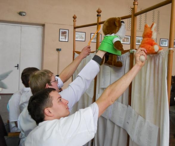 Интерны, приехавшие в Чернигов из нескольких Украинских ВУЗов, к затее отнеслись с пониманием и инициативой. Написали сценарий, нашли куклы и провели несколько репетиций.