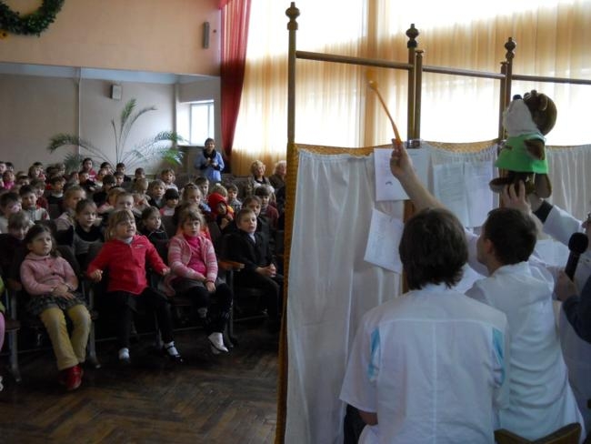 В этом году это выступление уже второе. Первое было в черниговском интернате и прошло довольно успешно. После спектакля ни один ребенок не отказался зайти на осмотр в кабинет стоматолога.