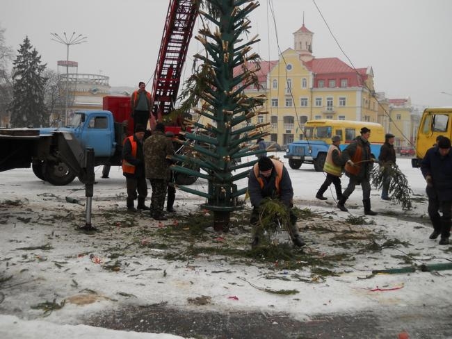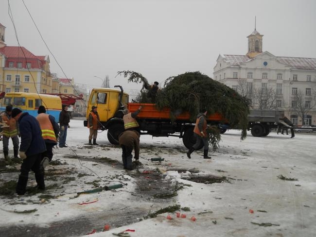 Новогодние праздники прошли и город снимает с себя праздничные наряды. Уже можно сказать «до свиданья» главному символу наступившего года – елке. Нашу новогоднюю красавицу убрали с площади, буквально, за день.
