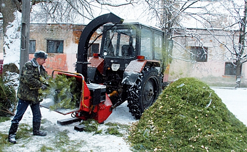 Eлками б/у отапливают город: новогодние праздники добавили коммунальщикам хлопот. На сегодня решается проблема утилизации елок, кучи которых стали массово расти возле мусорных контейнеров. Как сообщил заместитель начальника КП «Деснянское» Александр ЛАЗАРЕНКО, на сегодня в городе задействованы три дереводробильных механизма: это мобильные механизмы, но имеется еще и стационарная перерабатывающая конструкция. Такой машиной располагает «Зеленбуд». Приобретены они три года назад и уже себя окупили, поскольку используются круглый год. Кроме того, машины обслуживают и частные заказы. Час работы дереводробилки стоит 140-160 гривен (два прицепа). Далее елочную щепу развозят по котельным, которые отапливаются старым дедовским способом, то есть дровами.