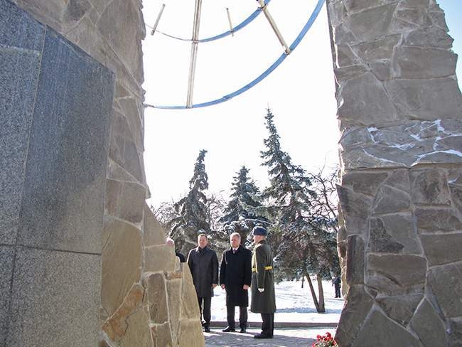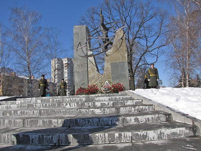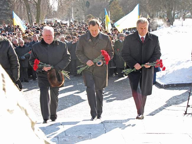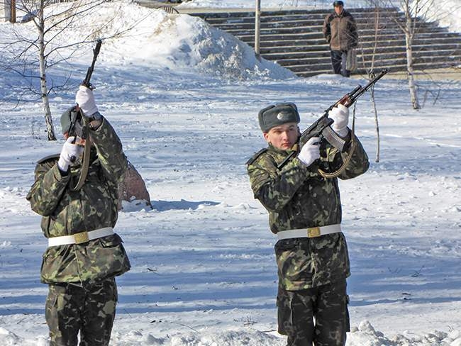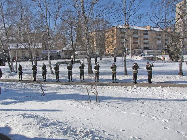 Участники митинга минутой молчания почтили память воинов, которые погибли, выполняя свой интернациональный долг, и под залпы оружейного салюта возложили цветы к монументу.