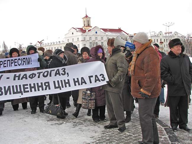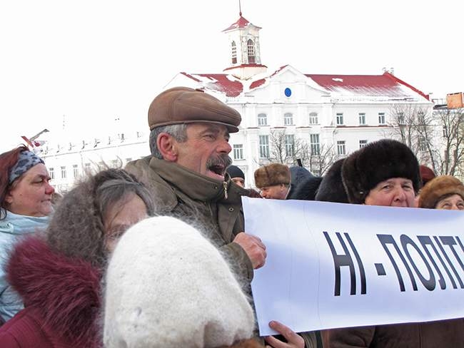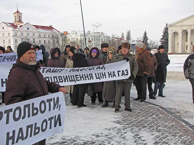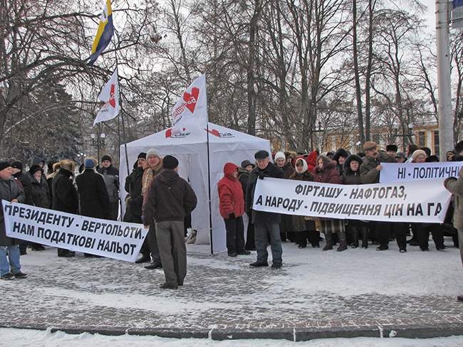 Причина пикета – годовщина правления В. Ф. Януковича. У стен администрации собралось около ста человек. Участники пикета выдвигают обвинение в адрес нынешнего правительства о невыполнении предвыборных обещаний. К митингующим присоединился народный депутат Украины Виталий Терентьевич Корж. Участники скандируют: «Ганьба», «Правительство в отставку», «Украина для людей».