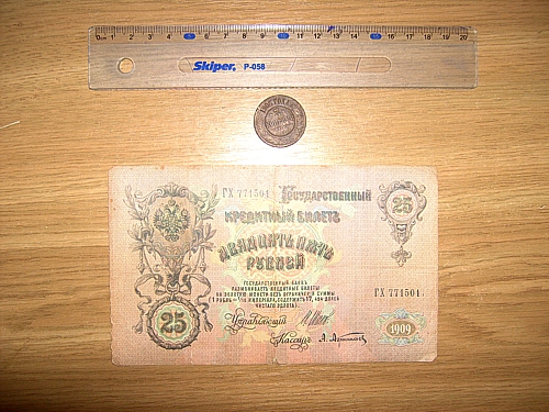 В конверті знаходились фотографії, а поміж них: купюра номіналом 25 (двадцять п’ять рублів)1909 року виготовлення та монета 3 (три) копійки 1905 року виготовлення. Жодних дозвільних документів на вивезення даних предметів у громадянина не було.