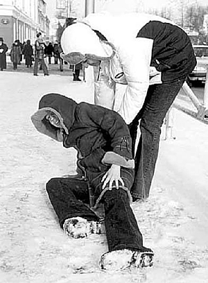 — Якщо ви впали на вулиці й при цьому відчули сильний біль або знепритомніли на декілька секунд, негайно прямуйте до травматологічного пункту, де вам нададуть необхідну допомогу.