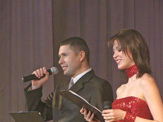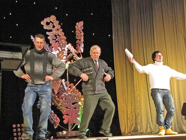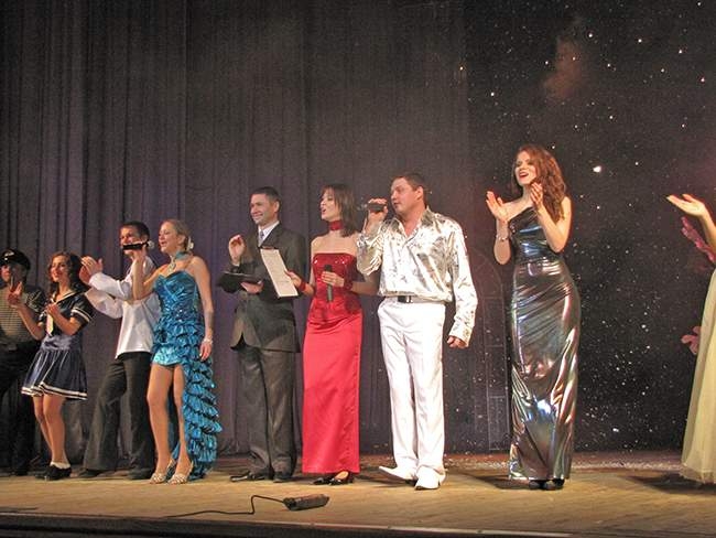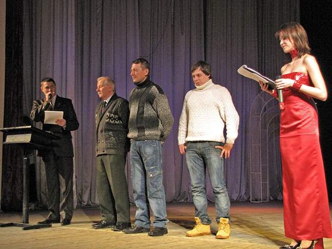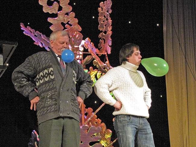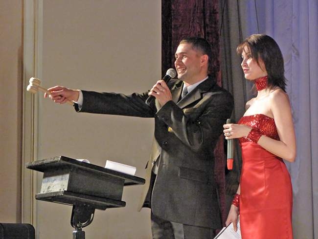 Также зрителей ждал специальный подарок – «Аукцион холостяков». Этот веселый, шуточный Аукцион, мастерски провели ведущие вечера: Марта Андрианова и Игорь Василенко. Холостяки веселого конкурса плясали и пели, состязались в силе, выполняли шуточные задания. Конечно, как и полагается на аукционе, их покупали женщины.