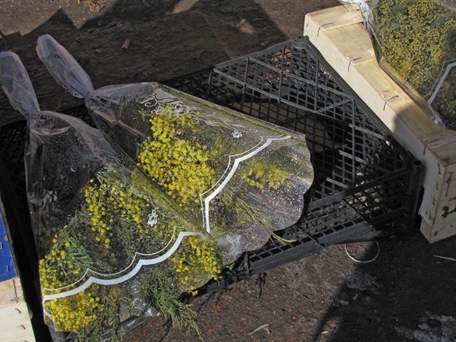 Помимо цивилизованной торговли, также бойко идет и стихийная уличная торговля на подходе к рынку. Здесь диапазон цен еще шире. Дешевле всего можно купить букетик «котиков» за 5 гривен. Букеты мимоз продают от 10 до 30 гривен.