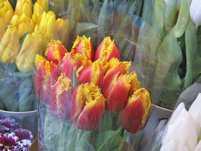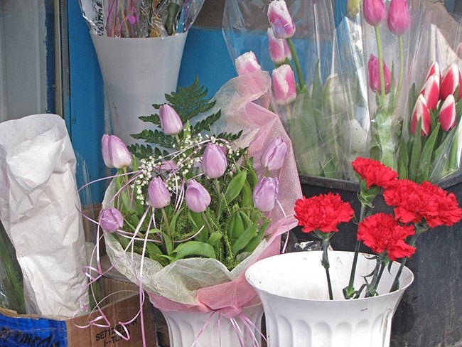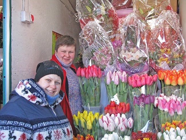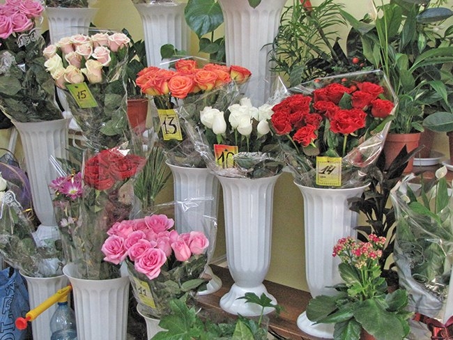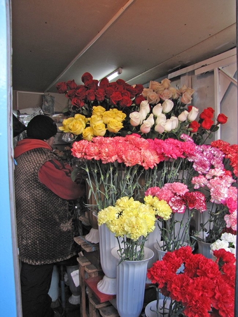 Совсем по-другому идет торговля в цветочных рядах возле Центрального рынка. Продавцы все приветливые, улыбчивые, предложат вам цветы на любой вкус. Но, и здесь, будьте внимательны. Симпатичные продавщицы – очень тонкие психологи. Цены на цветы во многом зависят от вас самих, от вашего умения общаться с продавцами. Немаловажное значение имеет и ваш взгляд. А цветы здесь есть разные: розы от 10 до 40 грн. штука; тюльпаны 15-25 грн.; гвоздики 10-20 грн.; гиацинты 20 грн.; синие ирисы 20 грн. Стоит только мимо проходящему мужчине остановиться и спросить цену, можете не сомневаться, дальше он пойдет с цветами.