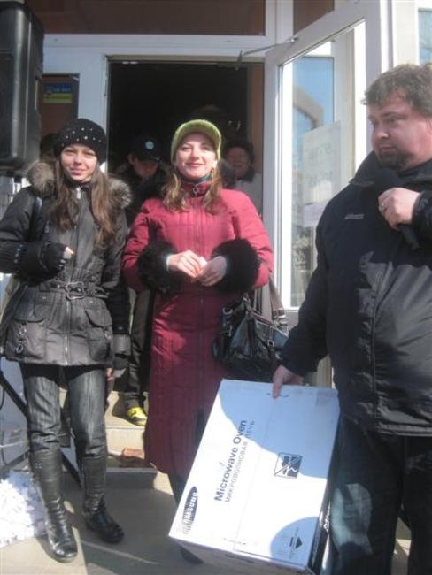 Счастливчики за 1 гривну приобретают - микроволновые печи, мобильный телефон, фен, чайник, эпилятор, весы, йогуртницы, сковороды Tefal, миксер, пылесос, кухонный комбайн и… телевизор с жидкокристаллическим экраном в 32 дюйма!