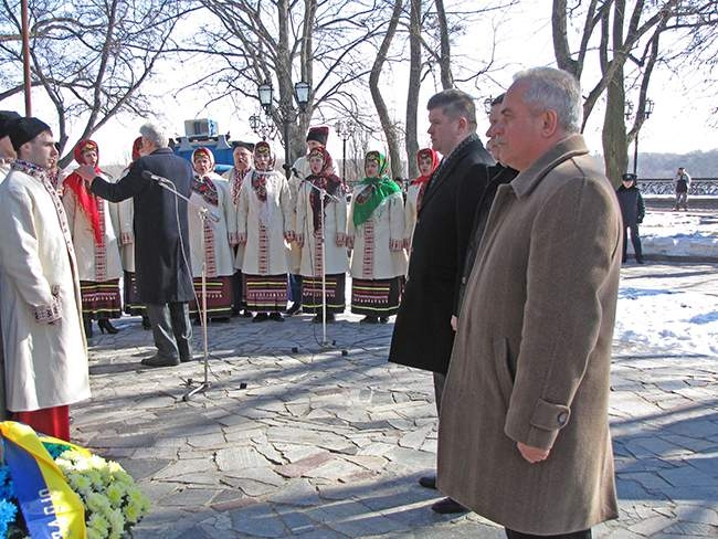 В исполнении Черниговского народного хора им. Д. Бортнянского звучит Украинская народная песня на слова Т. Шевченко «Реве та стогне Дніпр широкий». К подножию памятника возлагаются цветы, как знак почета и памяти об украинском поэте.