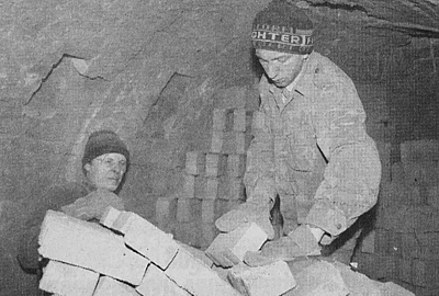 — Посадка цегли у піч іде по бригадному методу. Прийшли на восьму — відпрацювали вісім годин. Година перерви. За зміну садять десять-одинадцять тисяч учотирьох. А буває, що і вдвох, — каже майстер.