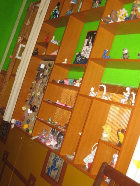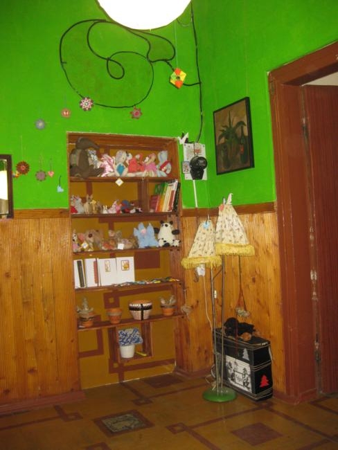 Под потолком — ловушки снов и кусудамы. На стенах — картины. На полу — синие вензеля. Любопытные кактусы выглядывают из расписного утюга, тихонечко звучит музыка… И по всем стенам — полки, на которых ждут пристройства зайцы, котята, сумки, украшения... Возьмешь в руки — не сможешь расстаться. Это то, что называется «ручная работа», «хэндмейд». Каждый предмет — неповторимый, особенный, теплый, сделанный одним человеком для другого. А в центре комнаты — большой стол. Садимся, мастерим, беседуем...