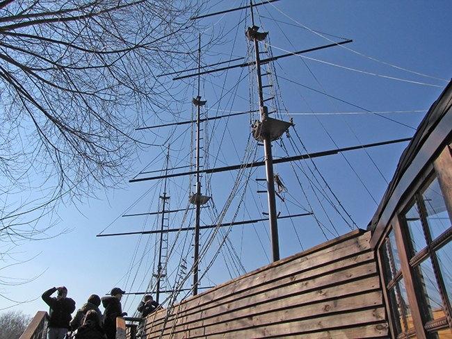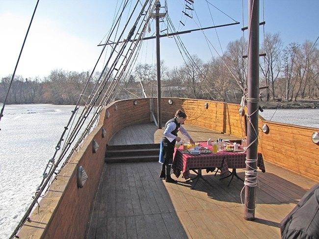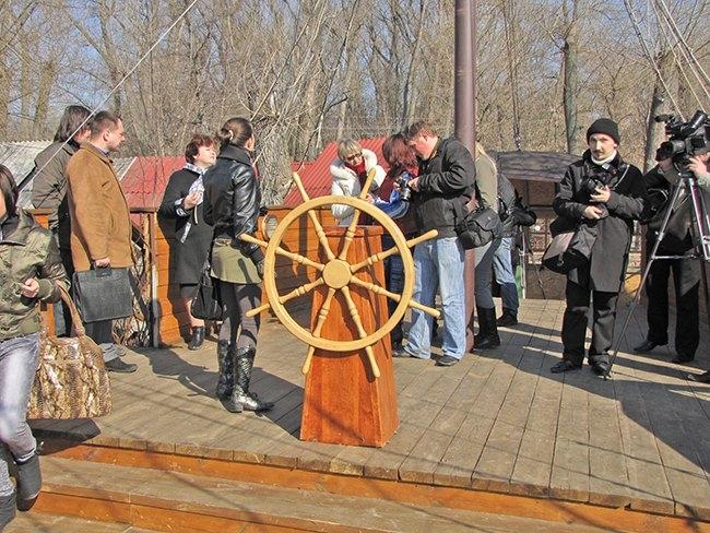 Следующее место для отдыха гостей и жителей города, которое посетили участники пресс-тура – народный ресторан «Колыба». Гидом по территории заведения была администратор ресторана Валентина Викторовна. Здесь можно увидеть голубей, павлинов, кроликов и другую живность. Для городских детей – это увлекательное путешествие в мир природы. Для них также на территории заведения оборудована площадка с разнообразными качелями. Здесь можно недорого и вкусно покушать, попробовав разнообразные блюда, приготовленные в сельской печи. Кроме всего прочего, ресторан – это музей народного быта. Гордость ресторана «Колыба» - корабль времен Петра І «Роксолана» с тремя мачтами, который построен в реальном размере.