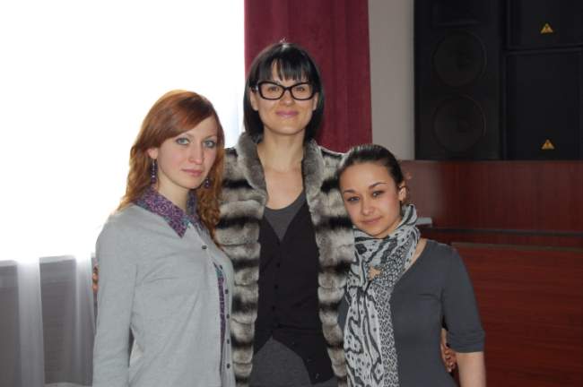 Получилось, наверное, даже смешнее, чем хотели киевляне. Машу загримировали под строгую, чопорную профессоршу из России и предложили студентам прослушать ее лекцию по экономике.