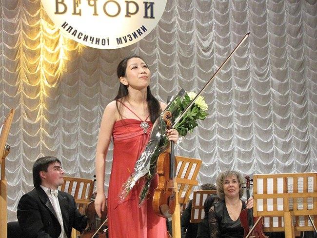 В этот вечер выступали лауреаты международных конкурсов Олег Полянский (Украина-Германия, фортепиано) и талантливая скрипачка Маю Кишима (Япония), и конечно Академический симфонический оркестр «Филармония» под руководством Николая Сукача.