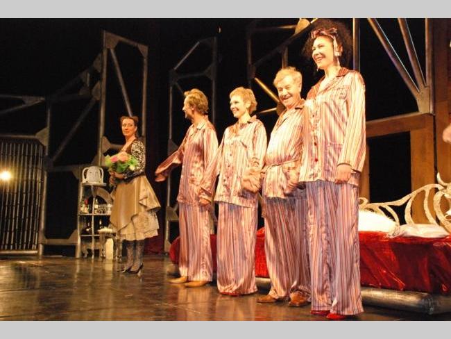 Пьесу Марка Камолетти, которая идет в европейских театрах уже около 30 лет, поставил художественный руководитель Черниговского облмуздрамтеатра им. Шевченко Андрей Бакиров. В спектакле заняты Валентин Судак, Оксана Гребенюк, Татьяна Шумейко, Виктория Пеняева, Александр Куковеров, Наталия Максименко и Эдуард Брагида. Постановка яркая, сочная, смешная — самое то, что нужно нам, чтобы стряхнуть с плеч зиму и заново ощутить вкус к жизни.