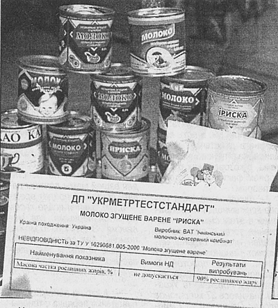 - Законодательная база у нас, мягко говоря, неадекватная. На рынке Украины царит сплошной беспорядок в вопросах качества и безопасности пищевой продукции. По закону о госнадзоре и контроле в хозяйственной деятельности, если мы хотим прийти с проверкой на предприятие, то должны предупредить об этом заблаговременно — за 10 дней! Как следствие - предприятия успевают «подготовиться» к нашей встрече. Или закрываются на несколько дней, мол, сырья нет, или же завозят на склад качественную продукцию. И проверки показывают, что там все в порядке. Например, в прошлом году мы проверяли сгущенку. Получили почти стопроцентный результат качественного товара. Когда же проверили сгущенку, купленную в торговой сети, — в 95% образцов молоком и не пахло.