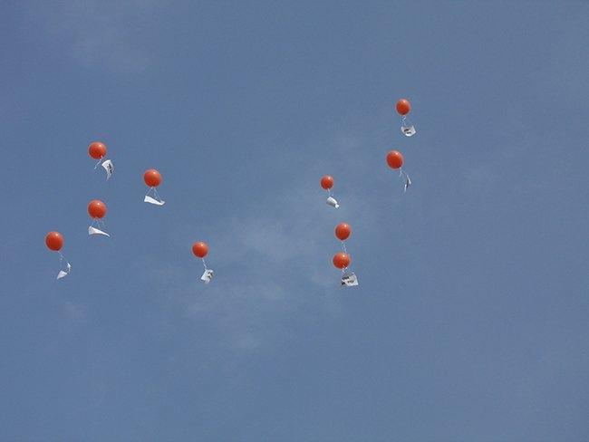 Участники акции запустили в небо воздушные шары, прикрепив к ним плакаты: «Цены взлетают до небес!», «Цена гречки», «Цена муки», «Цена бензина», «Коммунальные тарифы», «Цена овощей», «Цена проезда», «Цена образования», «Аптечные цены».