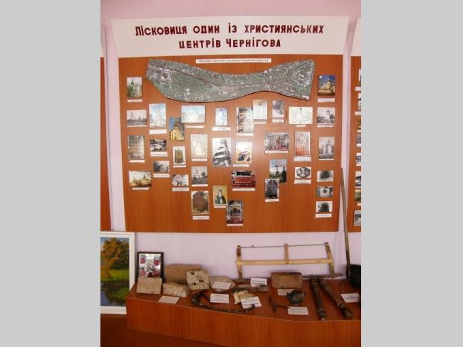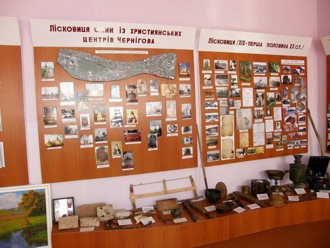 Музей занимает одну просторную и светлую комнату на 2-ом этаже здания. Его экспозиция тематически состоит из двух основных частей. Первая - это собственно и есть сам музей Лесковицы. Она включает в себя такие разделы, как "Лесковица в период Киевской Руси", "Лесковица - один из христианских центров Чернигова", "Известные люди Лесковицы" и др. На стендах можно увидеть современные и уникальные старинные фотографии, иллюстрирующие тот или иной период истории района.