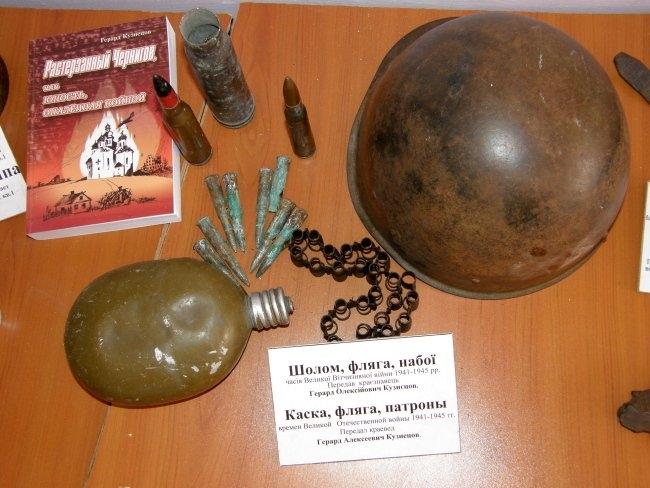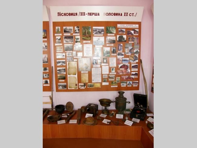 Ко временам ВОВ относятся солдатская каска, фляга, патроны и осколок немецкой бомбы. Все эти предметы, а также вышитые и нарисованные картины были подарены музею жителями Лесковицы.