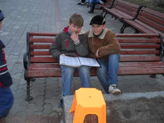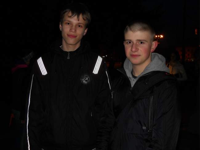 Максим и Денис, девятиклассники 30-й школы: мы гуляли почти всем классом и увидели караоке. Когда услышали, что бесплатно, подошли. Девчонки сразу выбрали Земфиру и начали петь. А мы ждали и фотографировали их.