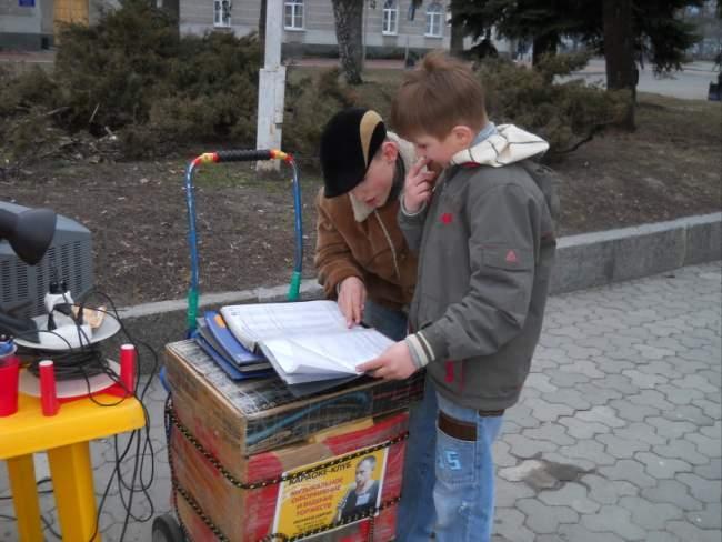 По вопросу цены ведущий объяснил, что поднять цену он был вынужден в прошлом году. Основных причин три: резкое уменьшение количества посетителей Аллеи (очевидно, из-за запрета употреблять в общественных местах алкоголь), небольшой – всего час-полтора, период реальной работы, плюс нестабильность погоды. Ну, и налогово-пенсионные изменения. К единому налогу и налогу на авторские права добавилось еще и отчисление в размере 330 гривен в пенсионный фонд. Общая сумма получается не маленькая – ровно 500 гривен.