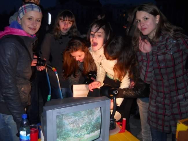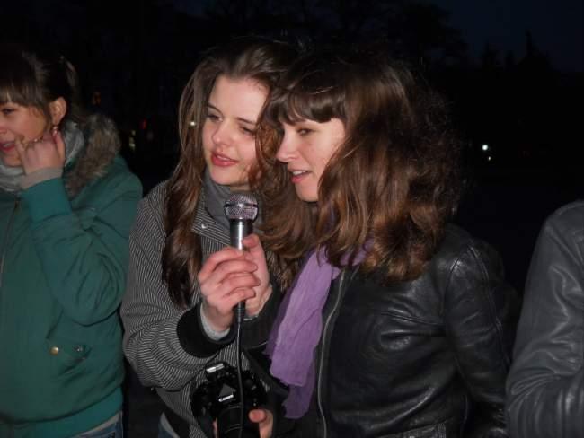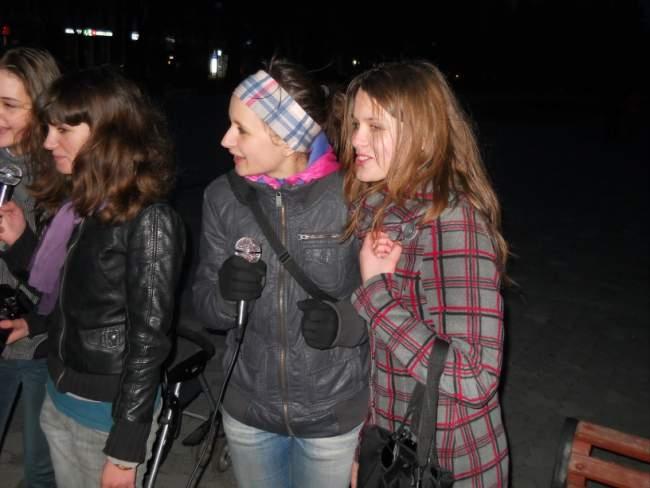Наталья Булайчик, студентка: мы случайно услышали, как зазывают на караоке. Когда сказали, что бесплатно, подумали – шутка. Оказалось, действительно, в честь начала сезона караоке, денег не брали. В том году приходили сюда часто просто послушать, как поют, но сами не пели. Сегодня впервые пела здесь. Звук и микрофоны очень хорошие.