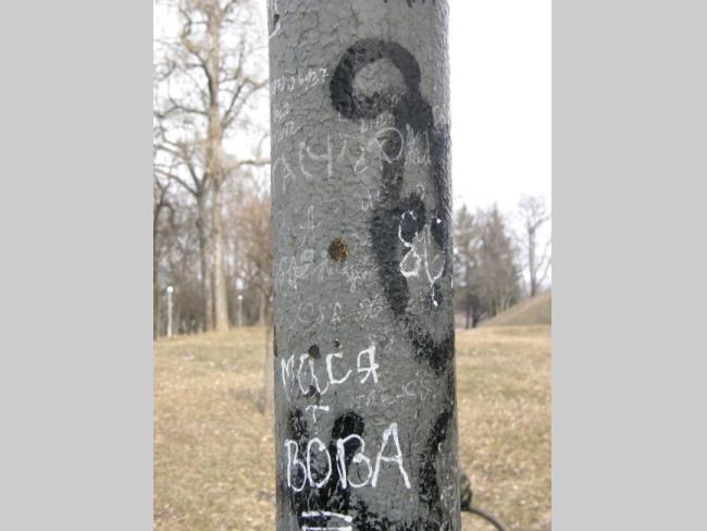 Вполне привычная картина, вот только беседка эта - одна из достопримечательностей Чернигова и ее обязательно показывают туристам во время экскурсии на Болдиных горах! И Виталику, которого по работе часто просят провести экскурсию для разных приезжих комиссий и столичных ревизоров, просто стыдно показывать гостям нашего города "Царскую" беседку с надписями далеко не по-французски!