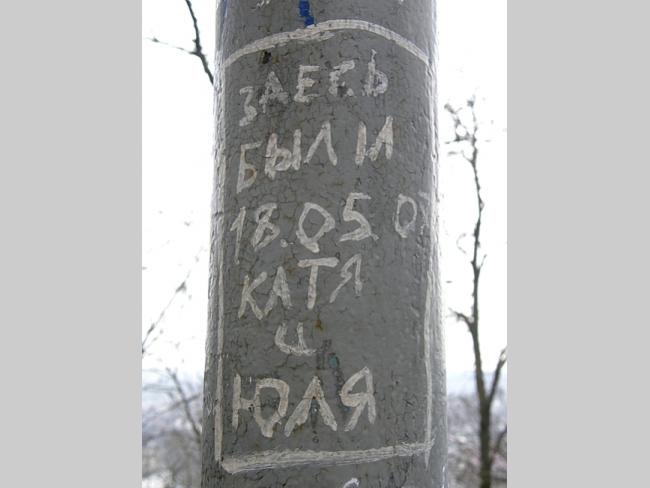 И действительно, стояла б себе обгаженная надписями беседка - и было бы что показывать туристам: вот, мол, смотрите, это -"Беседка влюбленных", а это - послания, которые они оставляют друг другу! Романтик! Граффити 21-го века!