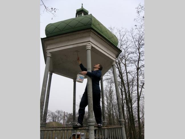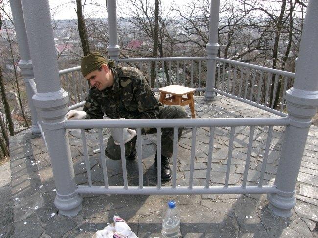 Почему же им была выбрана для реализации своего альтруизма беседка на Болдиных горах, а не, к примеру, лавочка возле собственного подъезда или детские качели во дворе (у Виталика двое маленьких дочерей)? Все дело в том, что Виталик по первой профессии - историк и к тому же большой любитель истории Чернигова. А ведь беседка на Болдиных горах - это не только парковое сооружение, это памятник истории - в этом году ей исполняется ровно 100 лет!