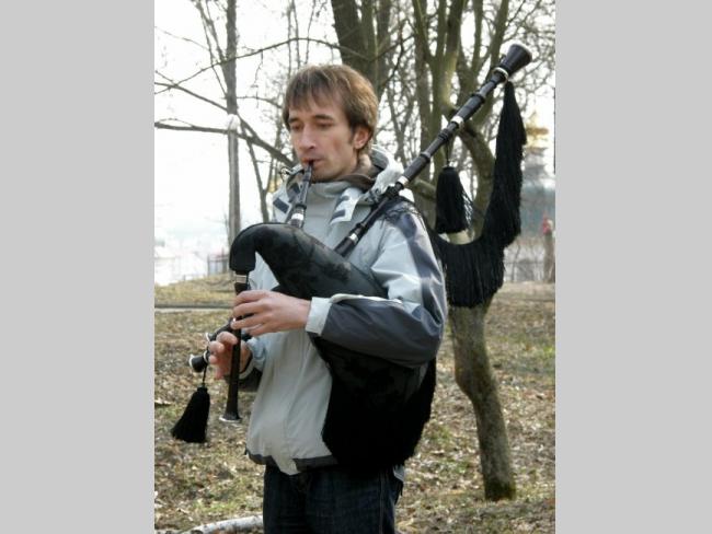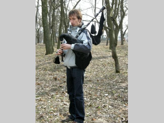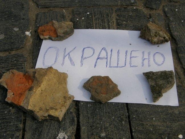 Интересно было понаблюдать реакцию людей на нашу с Виталиком работу. В основном - никакой реакции. Прошел знакомый экскурсовод с туристами - "Привет стахановцам!" - крикнул. Свадьба одна повозмущалась, что не дали им погулять и пофоткаться в беседке. "Мы же звонили вчера вашему начальнику!" - пошутил кто-то из друзей жениха. Невдалеке послышались звуки волынки - это пришел поиграть на пленэре флейтист и "волынщик" Родион Баев. Подошли девочки-подростки: "А зачем вы ее красите? Все равно опять обрисуют!"