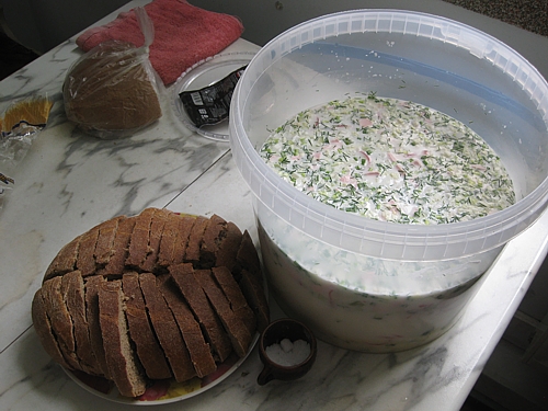 Подорожами цікавими місцями Рівного журналістка зайшла до кафе, де її впізнали і «від пуза» нагодували м'ясом. А сама Олександра... пригостила всю рівненську редакцію окрошкою!