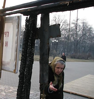 • «Біля Катерининської церкви відразу кинувся в очі обгорілий скелет палатки, котрий відволікає увагу від, власне, самої церкви, на яку я прийшов подивитись. Попіл від згорілої палатки лежить вже не один місяць. Проте ніхто з представників духовенства прибрати місце перед церквою не поспішає. Так і лежить в центрі історичного Чернігова купа сміття… Хотів глянути сьогодні на місця, якими чернігівці пишаються, а потрапив на згарище. Таке негативне враження й лишилось».