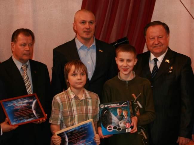 Переможці конкурсу – команди середніх навчальних закладів №27 (І місце), №29 (ІІ місце), №12 (ІІІ місце) відповідно отримали призи: телескоп Bresser Lyra, планетарій Bresser Junior Deluxe, та глобус зіркового неба “Zodiaco» з підсвічуванням. Вручили їм ці нагороди Почесний президент Благодійного фонду імені двічі Героя Радянського Союзу Олександра Молодчого, депутат Чернігівської міської ради Олександр Шкурат, Герой України Олександр Галуненко і начальник Регіонального медіа-центру МО України підполковник Валентин Буряченко.