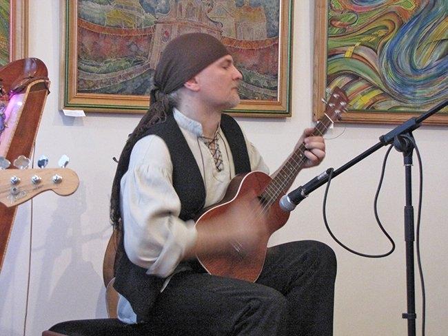 Элизбар чуткими пальцами тронул струны кельтской арфы, и волшебные звуки заполнили зал. Музыка, которую играет Элизбар, по его словам – импровизации и ассоциации на темы сказок и живописи. Музыка очень красивая и успокаивающая. После арфы он берет флейту, и музыка уносит слушателей дальше в сказку. А еще были различные этнические флейты, мандолина, сансула, гавайская гитара.