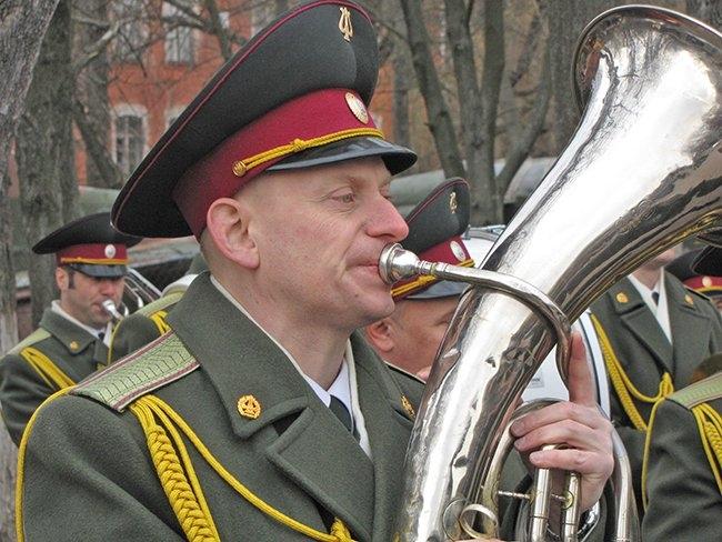 Под звуки военного духового оркестра лицеисты прошли торжественным парадом.