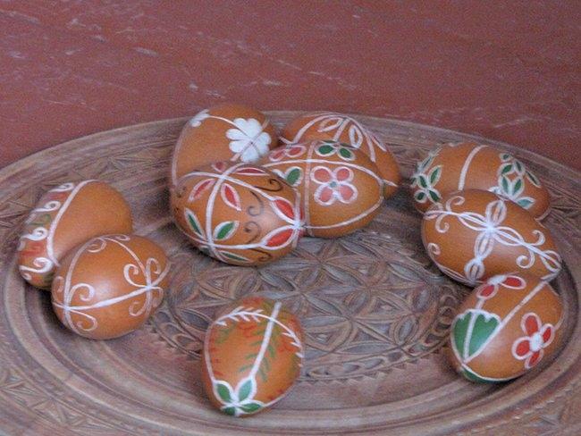 Ребята с интересом рассматривали рисунки с элементами орнамента (символы солнца, бесконечники, звездочки, снежинки, растительные мотивы), а также расписанные яйца, принесенные работниками музея.