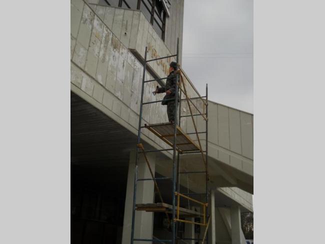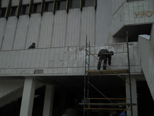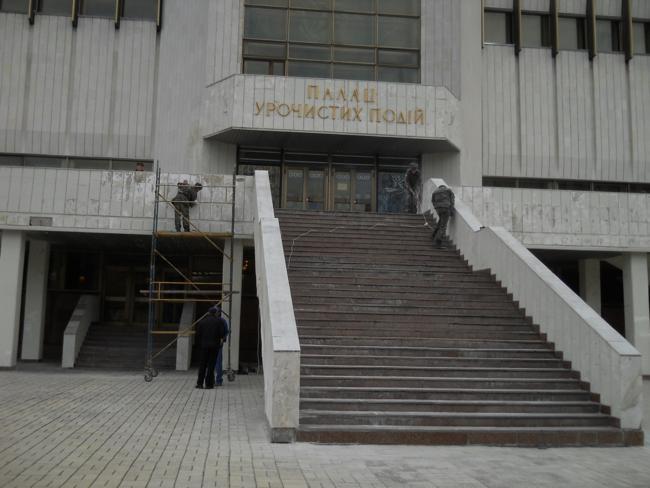 Еще в понедельник, 11-го апреля, обратил внимание, что на фасаде городского дворца бракосочетания ведутся какие-то работы. На автомате подумал: наконец-то, давно пора.
