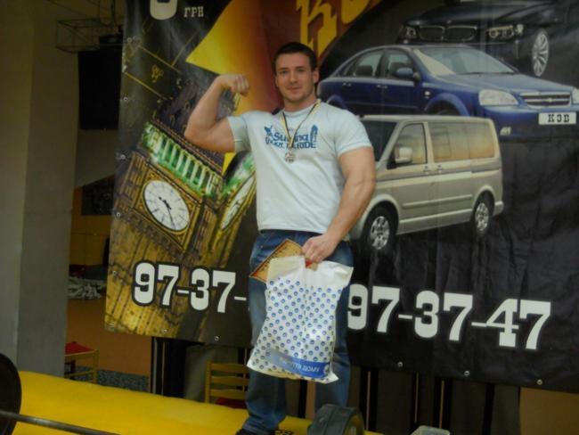 Сергей Драган, участник из Киева, абсолютный чемпион Украины: я с 16-ти лет занимался спортивными играми, а лет в 25 увлекся бодибилдингом. Сегодня победил в весе до 90 кг, конечно, доволен.