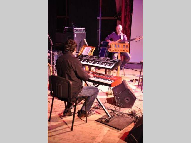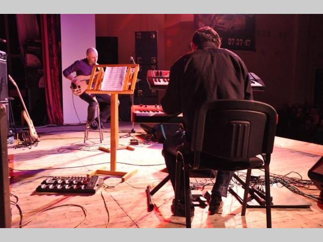 Но в любом случае, ни опоздавшие, ни некоторые проблемы со звуком в самом начале выступления, не смогли испортить общее впечатления от события. Нет, от События, ибо такой Концерт заслуживает того, чтобы быть написанным с большой буквы. В первом отделении джазовую феерию выдали главный герои вечера – Усейн Бекиров и Игорь Закус. Описать их выступление – невозможная задача. Это надо было слышать и видеть: пальцы Бекирова и Закуса по клавишам и струнам летали с такой скоростью, что сливались в одно пятно телесного цвета.