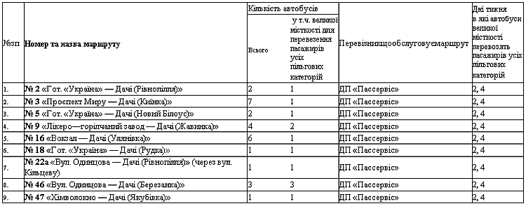 Графік перевезень мешканців міста Чернігова до садово-городніх масивів у весняно-літній період 2011 року