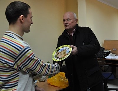 Но, как бы там ни было, встреча состоялась почти на равных. А обмен подарками (фирменный пакет с логотипом газеты «Молодий буковинець» против сувенирной тарелки ручной работы с изображением Пятницкой церкви, юбилейной монеты «1100-річчя літописного Чернігова» и фотографий с видами города) получился весьма выгодным для участника проекта. :)