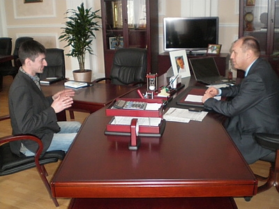 И наконец, в-третьих, Михаил Салитра нанес визит мэру. Чистоты эксперимента (а его суть заключалась в том, насколько легко может «чужой» человек получить «доступ к телу») не получилось, ибо резонанс, вызванный проектом «Інше місто», докатился и до мэрии, где даже охранник узнал в посетителе журналиста из Черновцов.