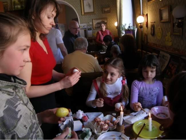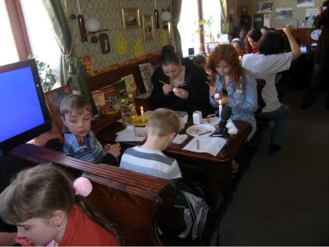 з одинадцятої години ранку організатори події зустрічали всіх бажаючих навчитися робити справжні писанки. Дітей, що завітали на подію та їх батьків навчала цьому майстер народної творчості, член Спілки майстрів народного