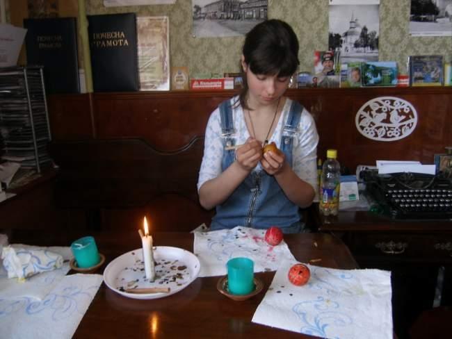 мистецтва - Ольга Костюченко, котра показала та розказала, як зробити традиційну українську писнаку самостійно. Під час бесіди можна було дізнатись і про те, який зміст вкладено в кожен символ, котрий наноситься на Великодню писанку, що він означає, від чого оберігає, чому сприяє.