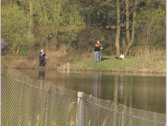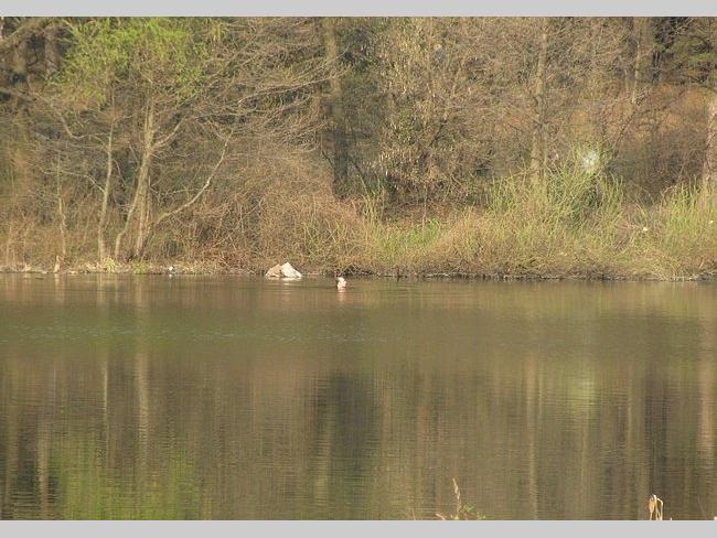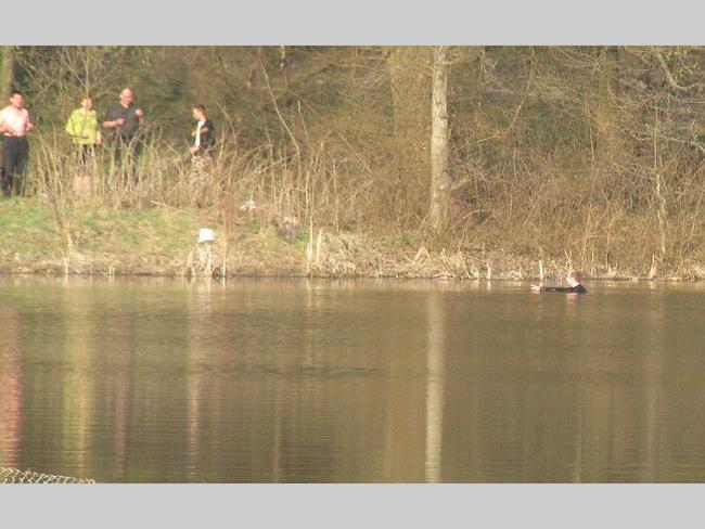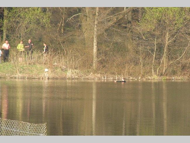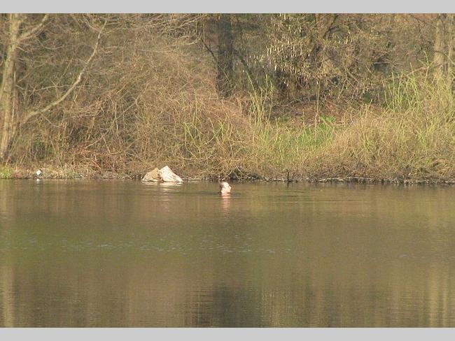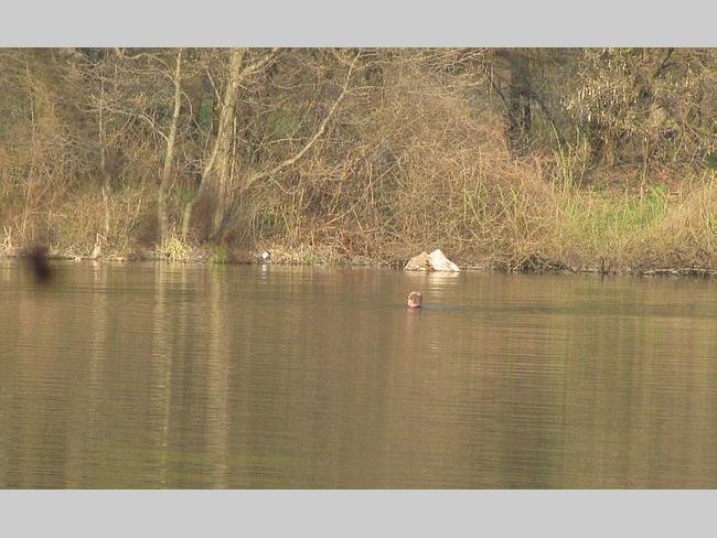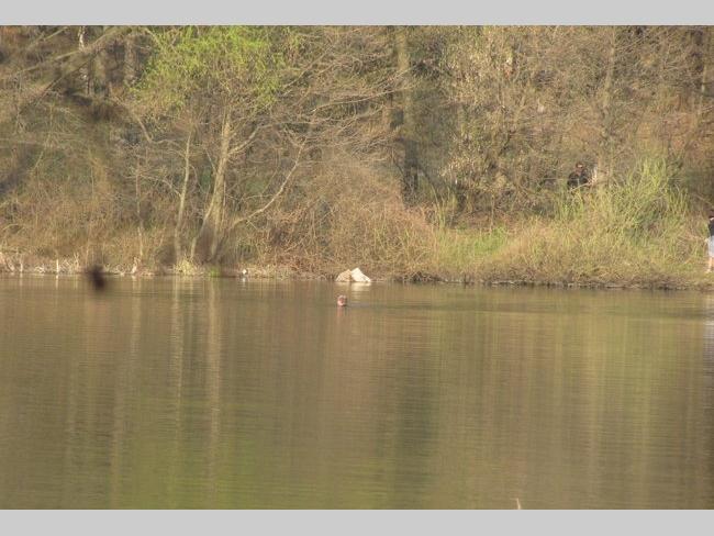 На другом берегу нарушителя спокойствия не выпускали из воды минут 10, но он вышел и скрылся в лесу.