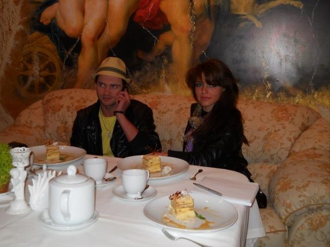 Ровно в 17.00 Дмитрий и Виктория появились в ресторане «Гетьман», где их и, пришедших на встречу журналистов, уже ждал «сладкий» стол.