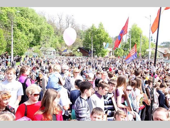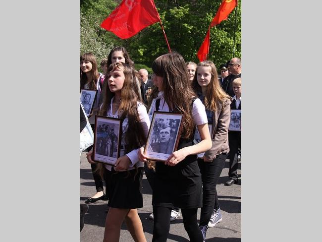 Від Красної площі урочистою ходою колона учасників свята рушила до Меморіалу Слави. Дорогою ветеранів вітали школярі міста і жителі міста, які створили живий коридор від Красної площі до Болдиної гори. Чимало школярів прийшли на урочистості до Дня Перемоги з портретами своїх прадідів і дідів, які воювали на фронтах Великої Вітчизняної війни, були партизанами чи підпільниками.