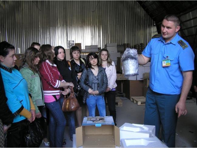 Головний інспектор відділу митного оформлення № 1 Надія Лукашова розповіла і продемонструвала на прикладі вантажу деревини основні етапи митного оформлення. Юрій Коврига, провідний інспектор служби боротьби з контрабандою та порушеннями митних правил, повідомив про основні завдання і функції у напрямку боротьби з контрабандою, навів конкретні приклади фактів виявлення та припинення порушень митних правил. Студенти отримали змогу побачити затримані предмети – об’єкти порушень митних правил, що зберігаються у митниці до рішення суду. На питання з приводу розвитку інформаційних технологій та захисту митної інформації, що виникали у студентів під час екскурсії по митниці, відповідав Сергій Константинов, головний інспектор відділу інформаційної роботи та митної статистики.