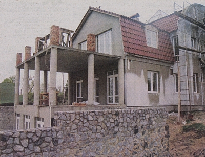 Навкруги за парканом лежали пісок, каміння, щебінь, стояли вагончик, бетономішалка. До будинку приставлені риштування. Міністра тут явно нема, подумали ми. Та вирішили все ж таки перевірити.