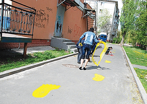 О следах: такие вот забавные желтые следы видел недавно на одной из улиц города